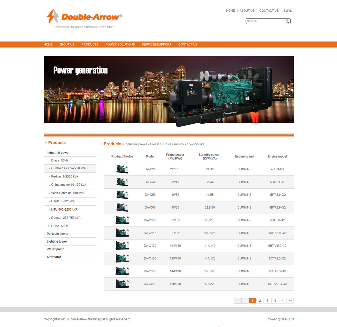 DOUBLE-ARROW provides the gensets power range from 1KVA to 3000KVA,cooperates with world-famous engine of Cummins,Perkins,Volvo Penta,Deutz and MTU etc for industrial gensets and adopts self-designed single cylinder engine for portable gensets.Gensets type includes open frame,soundproof,trailer and containerized type.