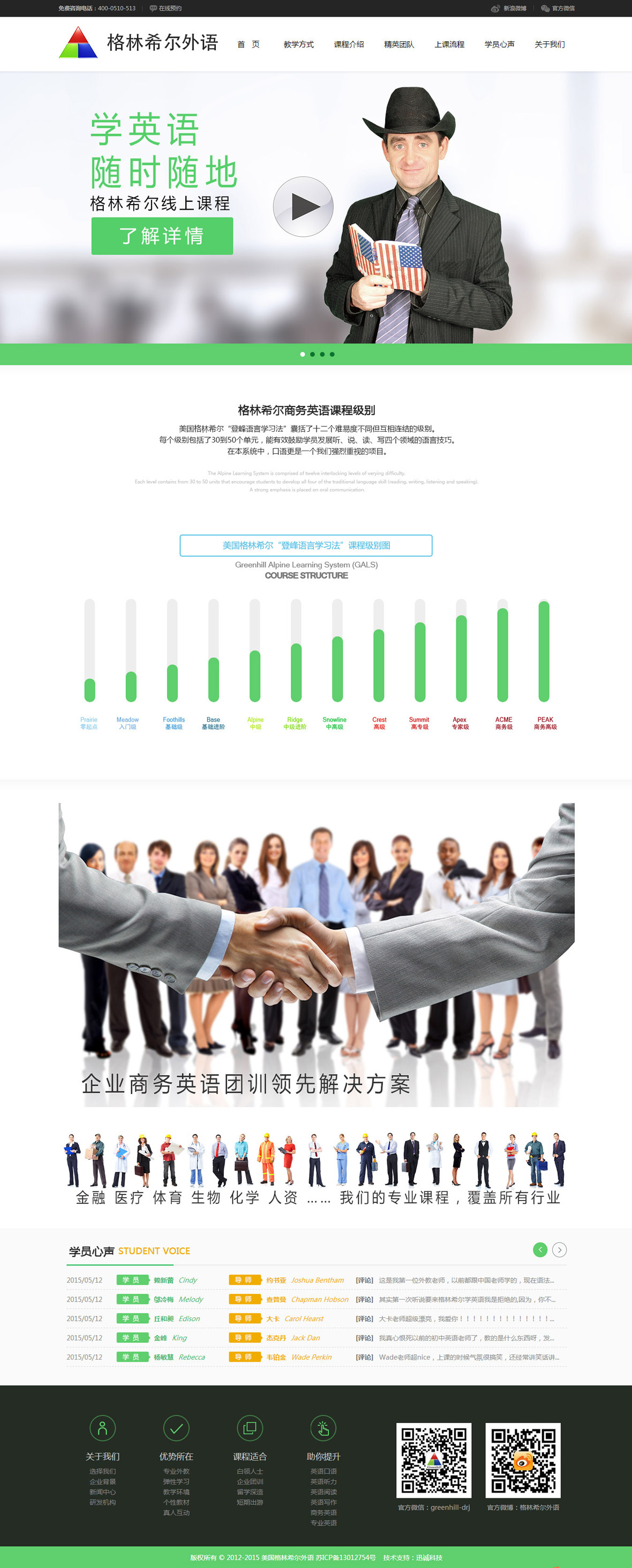 格林希爾(中國(guó))的所有學(xué)習(xí)中心都擁有世界一流的現(xiàn)場(chǎng)和在線學(xué)習(xí)環(huán)境,為學(xué)員提供定制的英語(yǔ)學(xué)習(xí)課程。美國(guó)格林希爾為廣大學(xué)員鋪就成功之路!