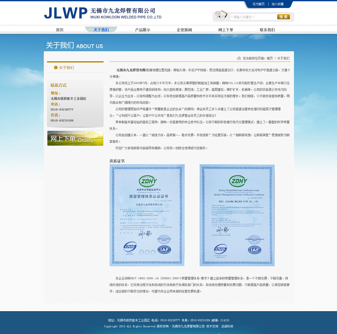 無錫市九龍焊管有限公司地理位置優(yōu)越,南臨太湖、東近滬寧鐵路、西近錫宜高速出口、北靠京杭大運河和滬寧高速公路,交通十分便捷。