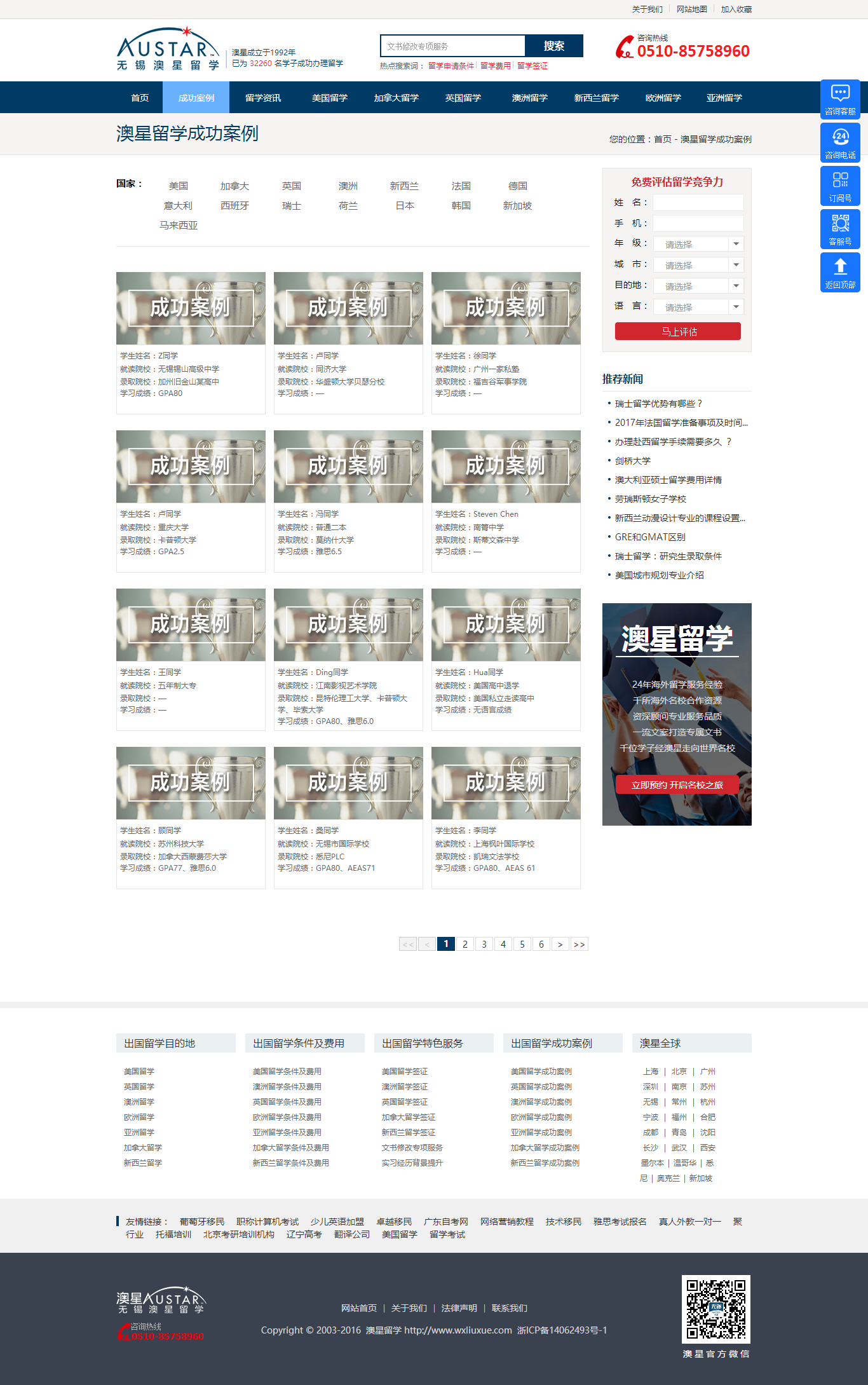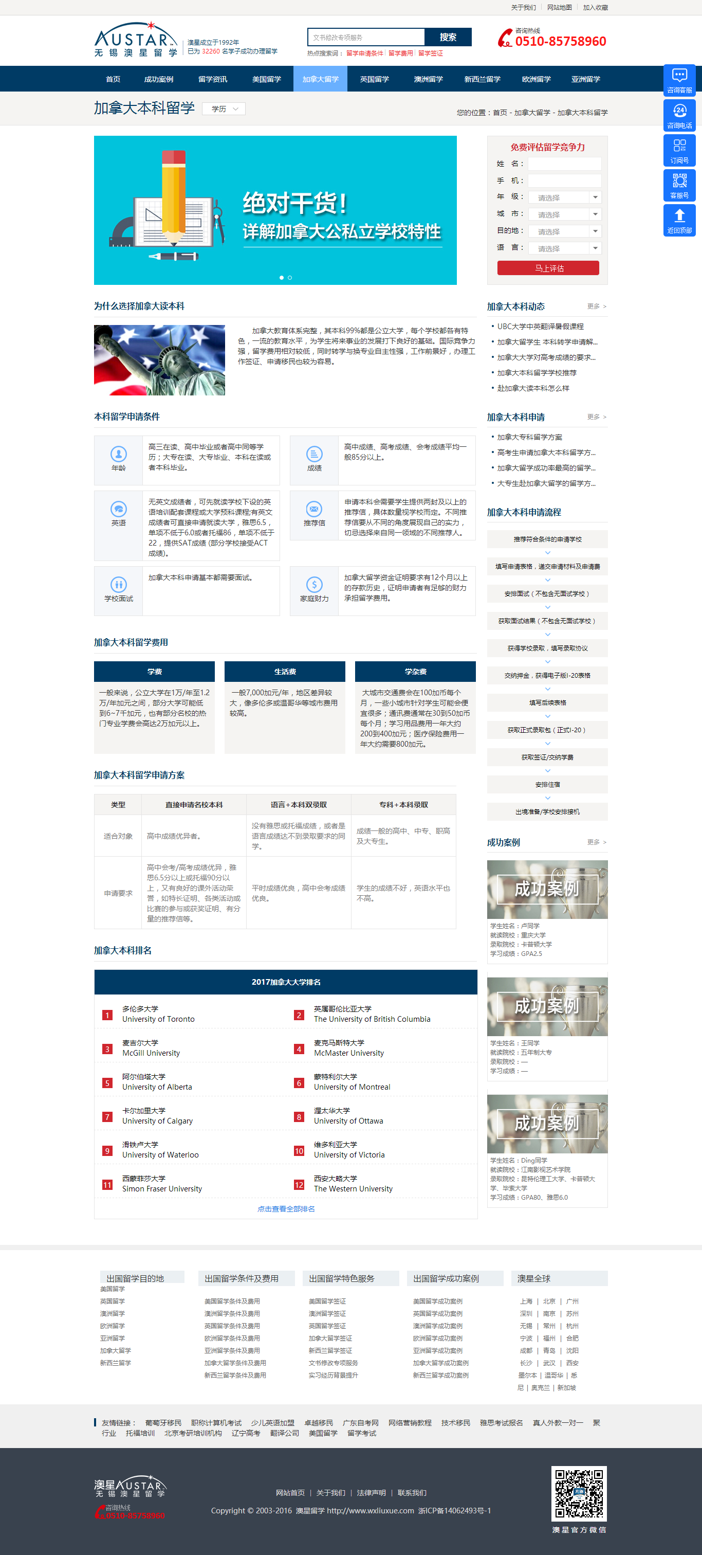 無錫澳星留學(xué),全稱北京澳星留學(xué)咨詢有限公司無錫分公司,是澳星品牌旗下專業(yè)從事出國留學(xué)的服務(wù)機(jī)構(gòu),其前身是創(chuàng)辦于1999年的北京環(huán)宇匯才出國留學(xué)咨詢有限責(zé)任公司(教外綜資認(rèn)字【2004】307號(hào))。公司留學(xué)業(yè)務(wù)覆蓋范圍廣泛,提供包括留學(xué)咨詢、留學(xué)規(guī)劃、考試指導(dǎo)、專業(yè)選擇、學(xué)校申請、文書指導(dǎo)、簽證辦理、接機(jī)住宿等多樣化留學(xué)一站式服務(wù)。秉承"專業(yè)、專心、專一"的服務(wù)理念,已成功幫助數(shù)千學(xué)生實(shí)現(xiàn)出國留學(xué)的夢想。