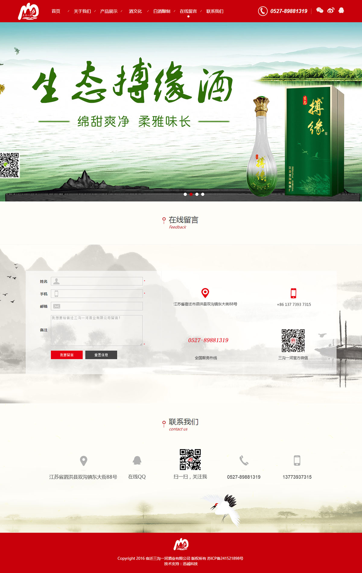 三溝一河酒是蘇酒的稱謂,通常是指江蘇省四大名酒雙溝酒、湯溝酒、高溝酒、洋河酒的簡稱,由于它們都坐落在最適合釀酒的老淮陰地區(qū),故白酒界稱之為三溝一河,也是當(dāng)之無愧的蘇酒代表,它們依托特異的地域生態(tài)環(huán)境和自然釀酒微生物體系,采用“婚燒老五甑法”生產(chǎn)工藝,泥窖固態(tài)發(fā)酵、續(xù)糟醅配料、混篜混燒,和香味濃烈的川派酒不同,三溝一河酒以口味醇正、綿、甜、爽、凈為顯著特點(diǎn),是名揚(yáng)天下的江淮派{蘇、魯、皖、豫}濃香型白酒的卓越代表。公司主營的三溝一河系列和搏緣酒系列被全國消費(fèi)者喜愛。