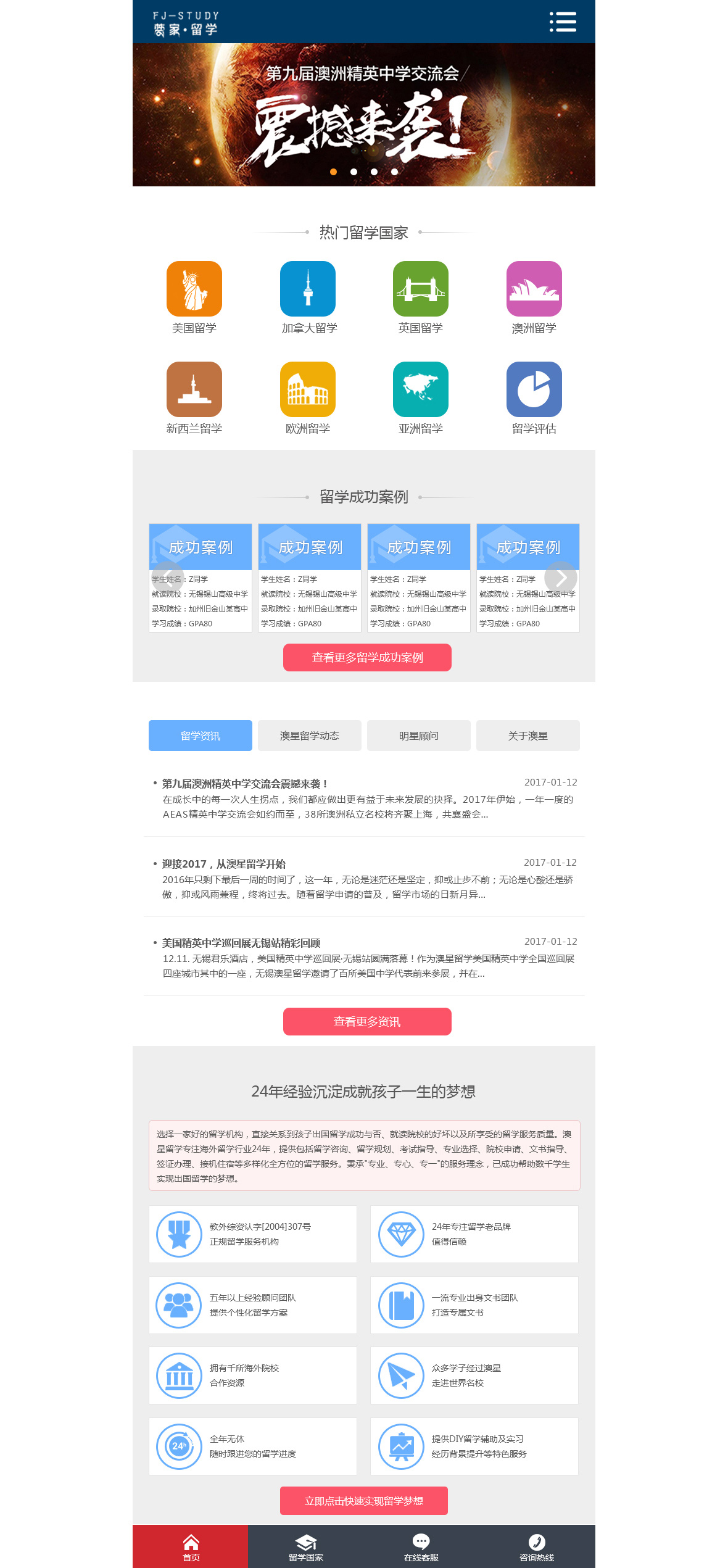 無錫梵家留學(xué)是梵家品牌旗下專業(yè)從事出國留學(xué)的服務(wù)機(jī)構(gòu),教外綜資認(rèn)字【2004】307。公司成立于2005年,是錫城最早的留學(xué)服務(wù)機(jī)構(gòu)之一,憑借精湛的業(yè)務(wù)能力和出色的服務(wù)水平贏得了學(xué)生和家長們的高度認(rèn)同和熱烈歡迎。業(yè)務(wù)覆蓋范圍廣泛,提供包括留學(xué)咨詢、留學(xué)規(guī)劃、考試指導(dǎo)、專業(yè)選擇、學(xué)校申請、文書指導(dǎo)、簽證辦理、接機(jī)住宿等多樣化留學(xué)一站式服務(wù)。梵家留學(xué)以口碑為先,將客戶體驗放在第一位,秉承"專業(yè)、專心、專一"的服務(wù)理念,已成功幫助數(shù)千學(xué)生實現(xiàn)出國留學(xué)的夢想。