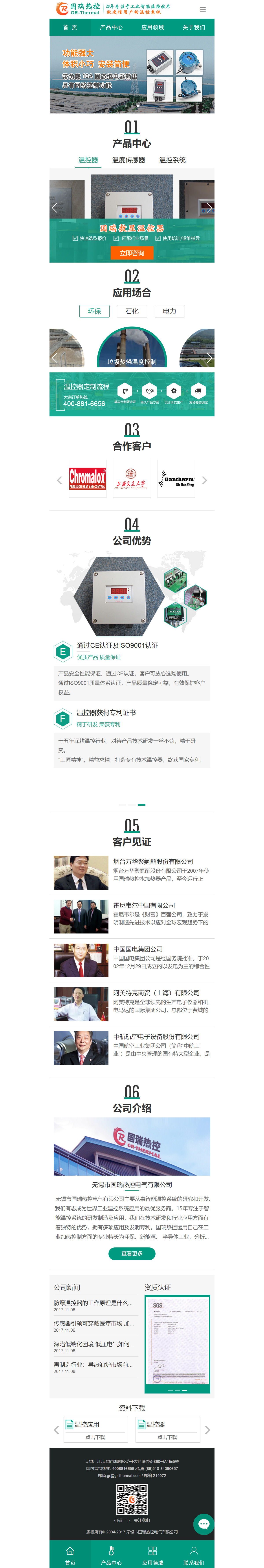 無錫市國瑞熱控電氣有限公司主要從事智能溫控系統(tǒng)的研究和開發(fā).我們有志成為世界工業(yè)溫控系統(tǒng)應用的最優(yōu)服務商。15年專注于智能溫控系統(tǒng)的研發(fā)制造及應用,我們在技術研發(fā)和行業(yè)應用方面有著獨特的優(yōu)勢,擁有多項應用及發(fā)明專利。