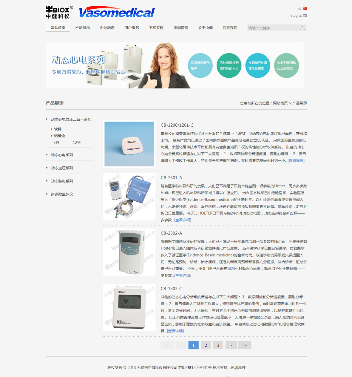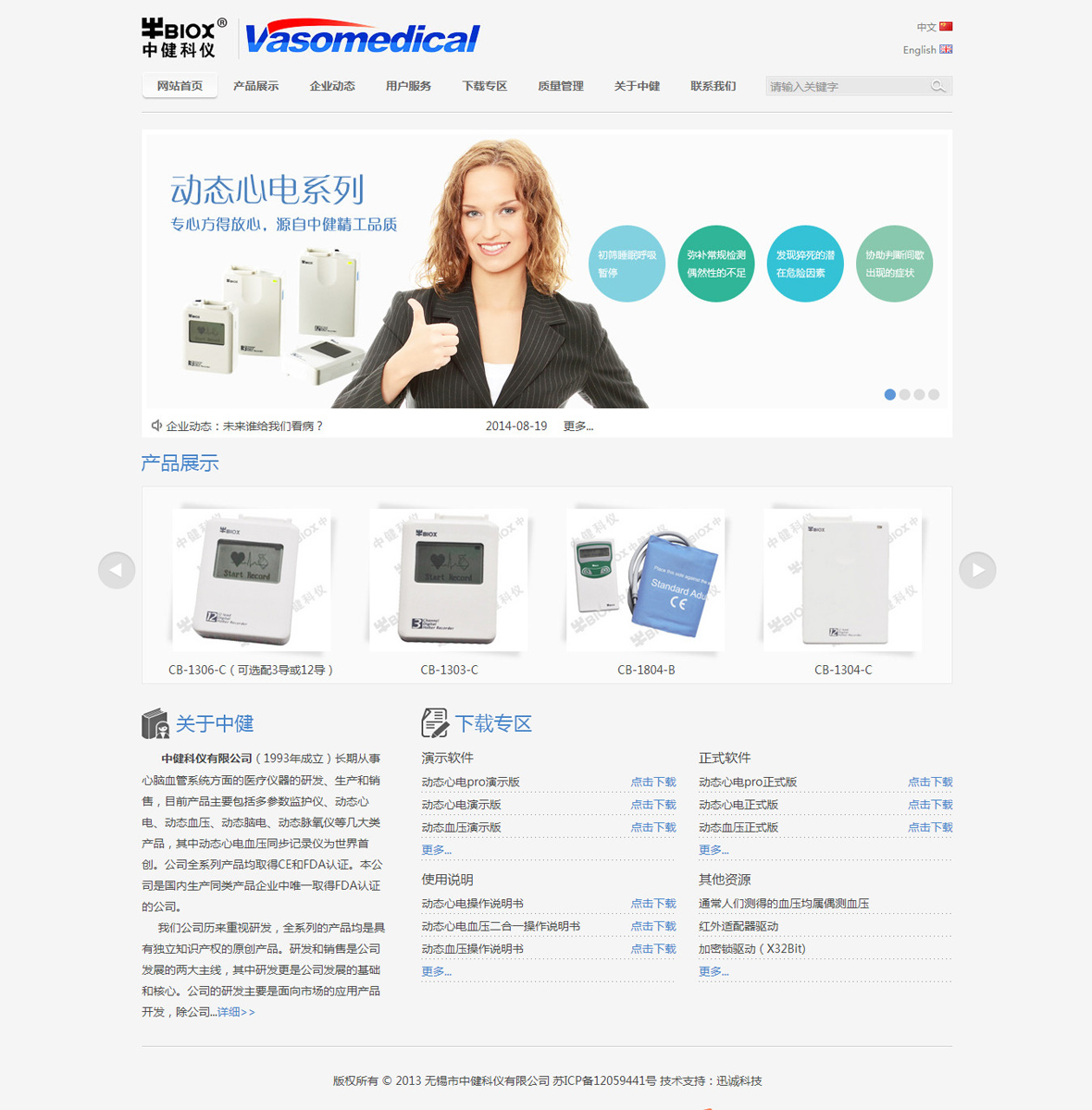 訪(fǎng)問(wèn)網(wǎng)站無(wú)錫市中健科儀有限公司創(chuàng)始于1996年,專(zhuān)業(yè)從事醫(yī)療儀器的研發(fā)、生產(chǎn)和銷(xiāo)售。主導(dǎo)產(chǎn)品有 動(dòng)態(tài)心電、動(dòng)態(tài)血壓、動(dòng)態(tài)心電血壓二合一、多參數(shù)監(jiān)護(hù)儀等產(chǎn)品。
