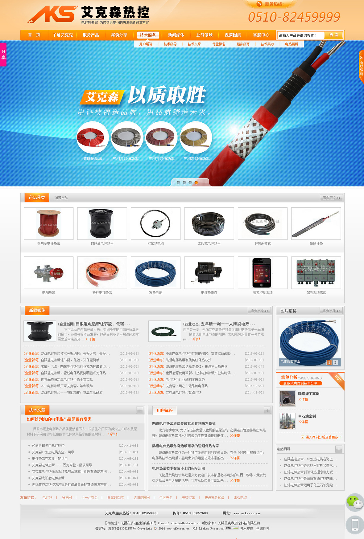 無錫艾克森熱控科技有限公司是無錫市高新技術(shù)企業(yè),坐落于美麗的太湖之濱,風(fēng)景絕美秀麗,歷史千年悠長,公司從事電伴熱帶產(chǎn)品研究開發(fā),是電伴熱帶、電加熱器、電氣配件的加工、制造企業(yè),并與國外知名研究機(jī)構(gòu)建成長期的技術(shù)合作關(guān)系,成功研制出國內(nèi)新一代“管道伴熱專用電伴熱帶”系列產(chǎn)品,充分滿足了國內(nèi)市場不同的場合與不同的溫度等諸多領(lǐng)域的特殊需求,廣泛應(yīng)用于石油、化工、鋼鐵、電力機(jī)械、冶金、醫(yī)藥、造紙、食品、交通、天燃?xì)?、建筑、電熱采暖、地?zé)嵩耘嗟榷嘈袠I(yè)。在國產(chǎn)電伴熱帶行業(yè)中,艾克森公司率先走向了國際化市場的新潮流。