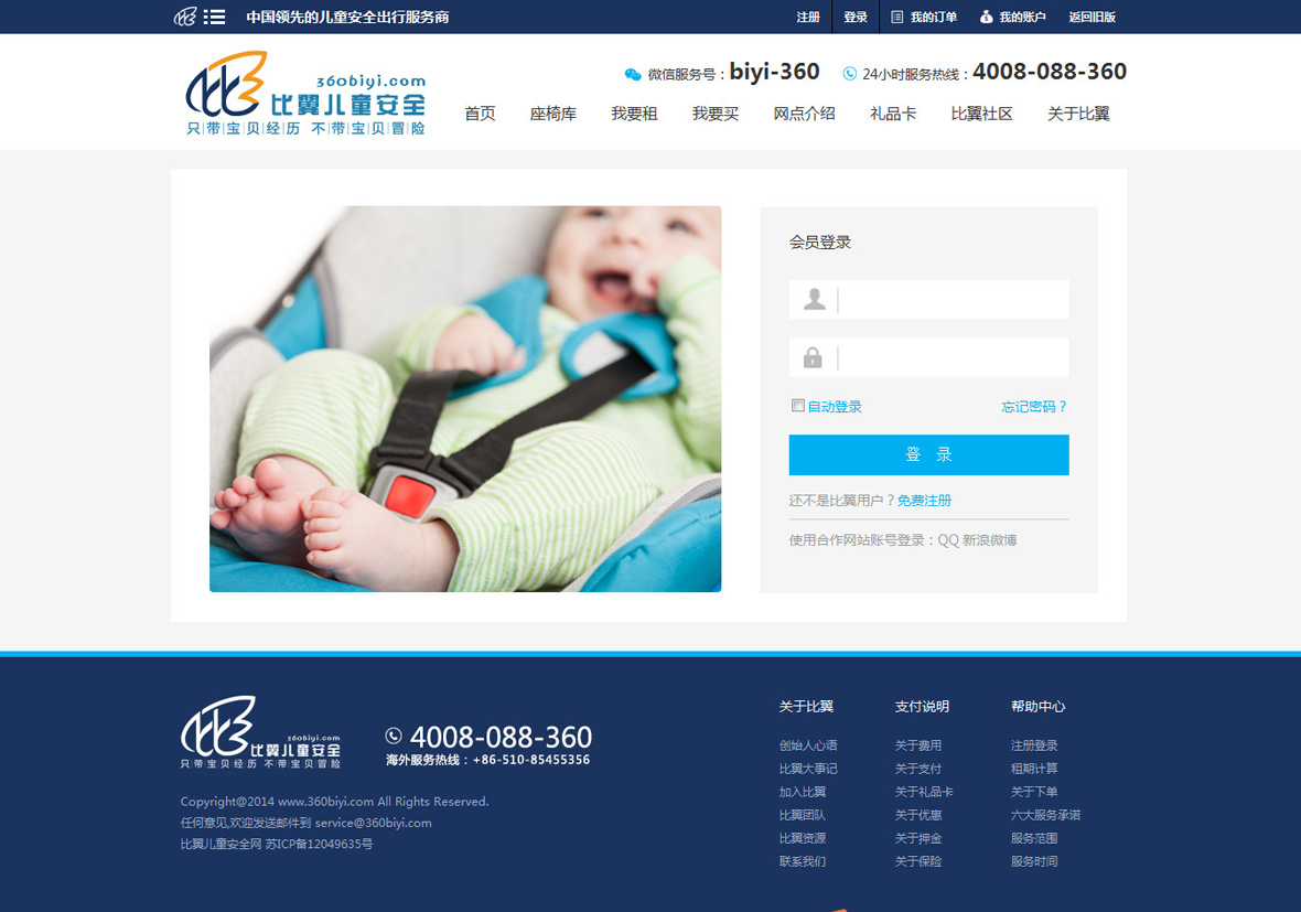 比翼兒童安全(360biyi.com) 采用類似汽車之家+神州租車”的互聯(lián)網(wǎng)O2O創(chuàng)新模式為中國(guó)2億0~12歲兒童提供最專業(yè)的兒童安全座椅服務(wù)和產(chǎn)品,包括最完整的座椅產(chǎn)品信息庫(kù)、專家咨詢、體驗(yàn)式購(gòu)買、社區(qū)分享、全國(guó)性租賃和全方位售后。我們既幫助每年1700萬(wàn)新生寶寶父母選擇最合適的安全座椅,也為先鋒人群提供覆蓋全國(guó)的隨心服務(wù)。